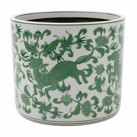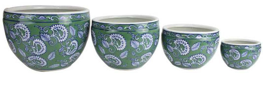 Vintage Green Pattern Ceramic Pot - L