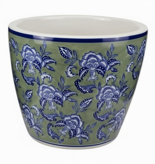 Vintage Green Pattern Ceramic Pot - Medium