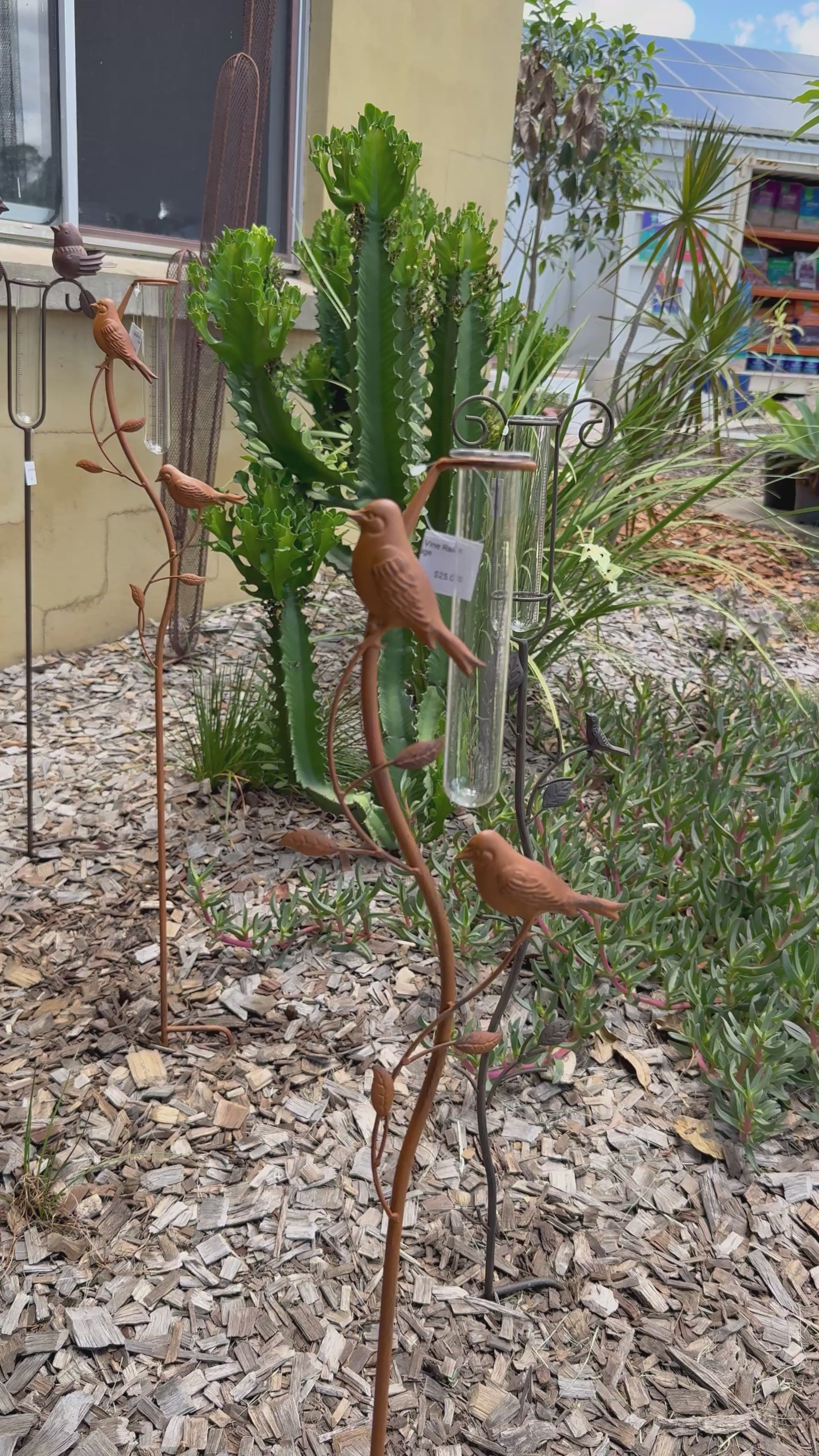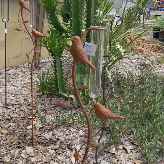 With a nature-inspired design, this rain gauge includes perched birds and a vine motif. Measures rainfall while enhancing garden aesthetics.