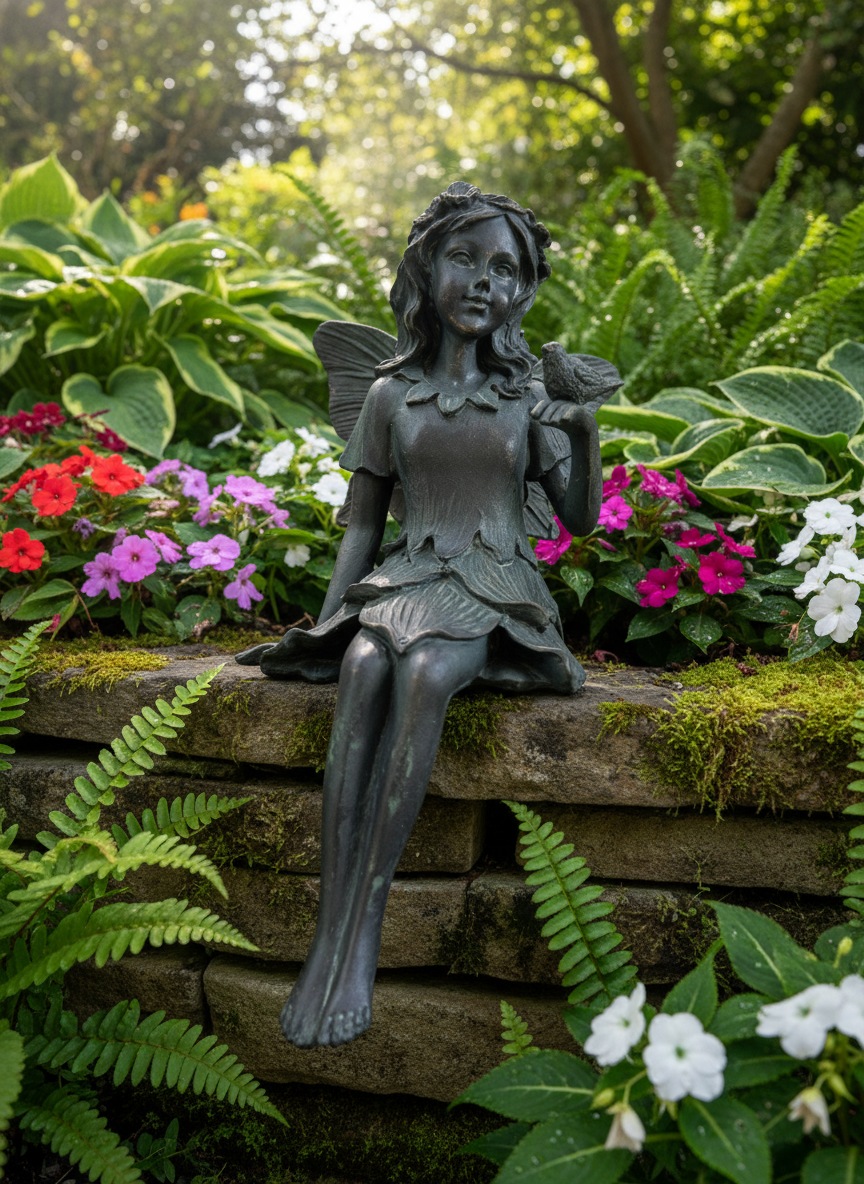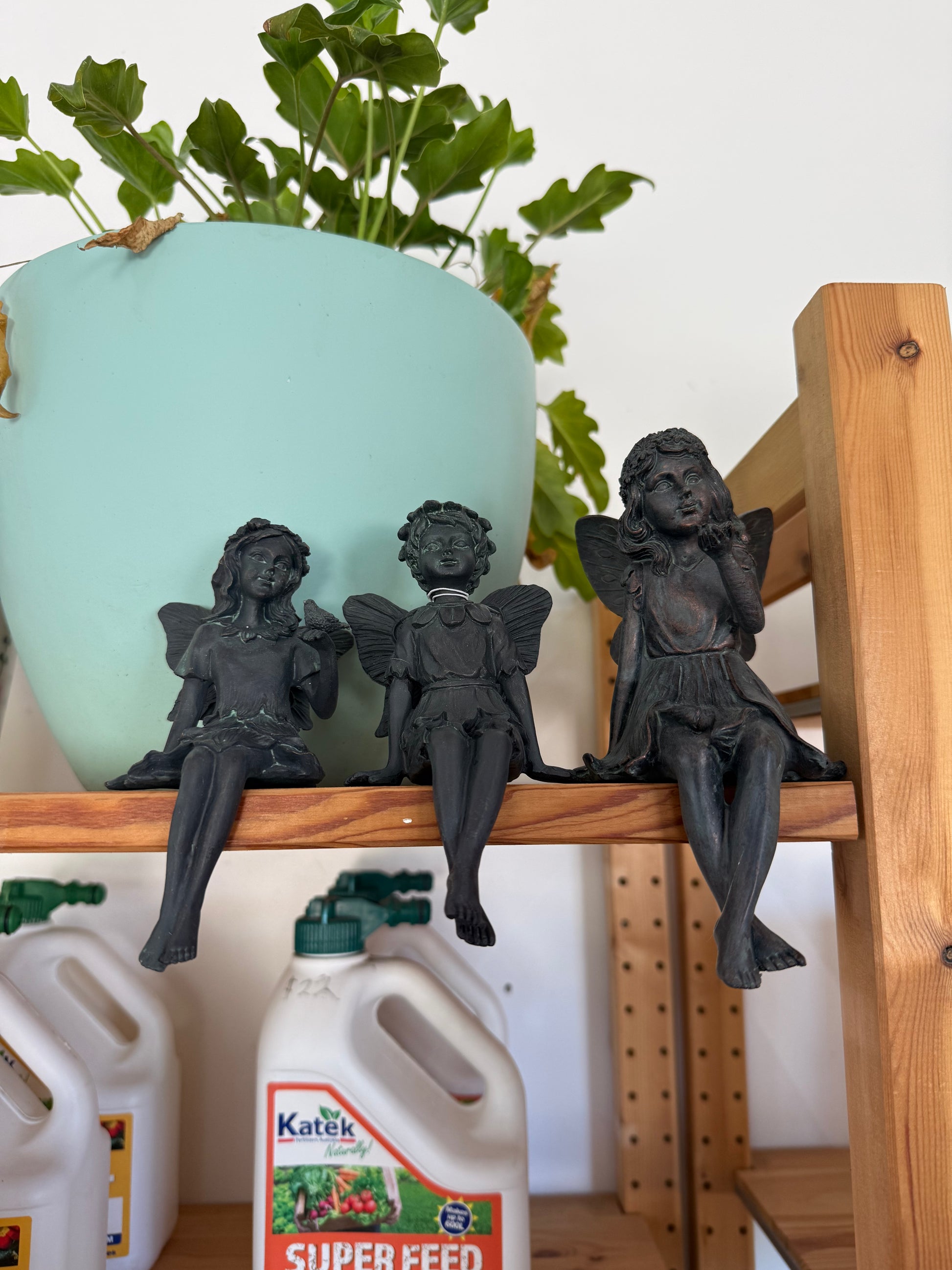 Tilly the Shelf Fairy perches gently on ledges or pots, spreading charm with her peaceful expression and delicate wings. Ideal for fairy gardens or children's spaces.