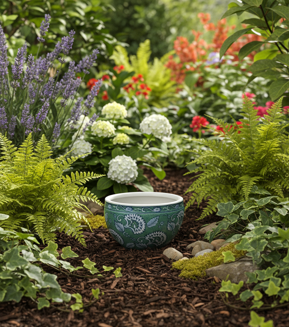 Vintage Green Pattern Ceramic Pot - XS